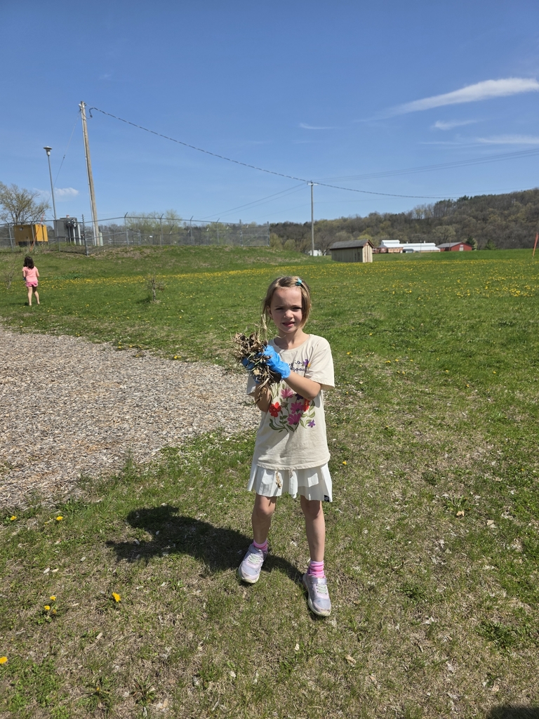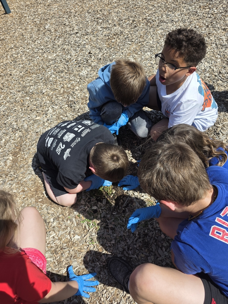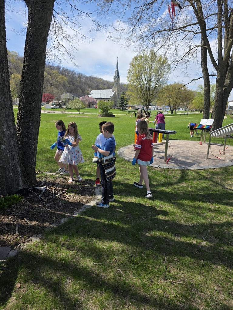 The 4th grade worked hard today to clean up the playground in honor of Earth Day!
